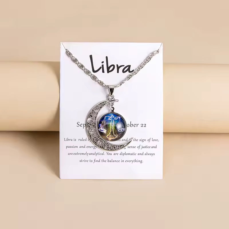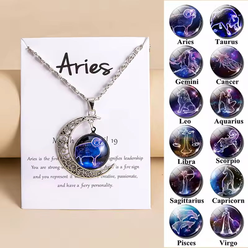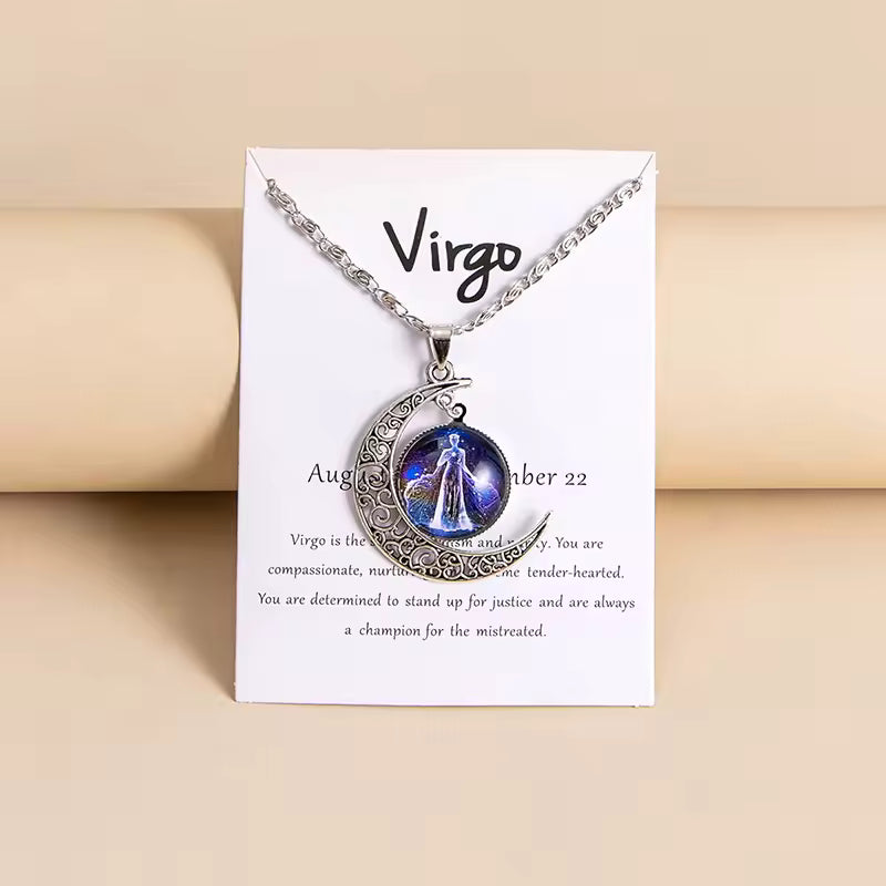 Wear your cosmic energy with pride. The Kind Supply StarSign™ Lunar Zodiac Necklace beautifully blends celestial design with personal meaning, featuring your zodiac symbol illuminated against a galaxy-inspired glass pendant. Set within an elegant crescent moon frame, this necklace captures the magic, mystery, and personality of your star sign.